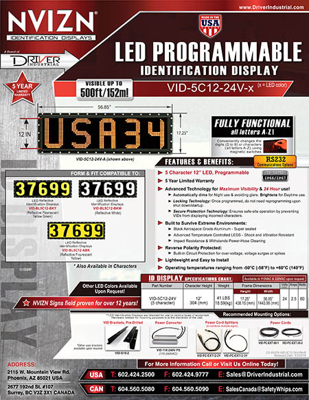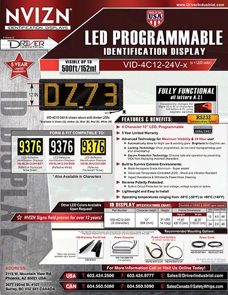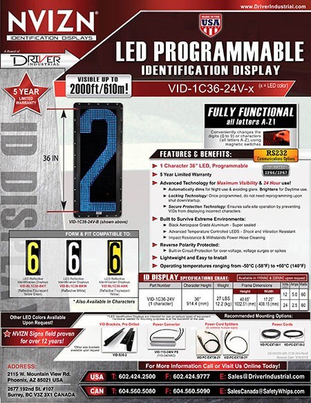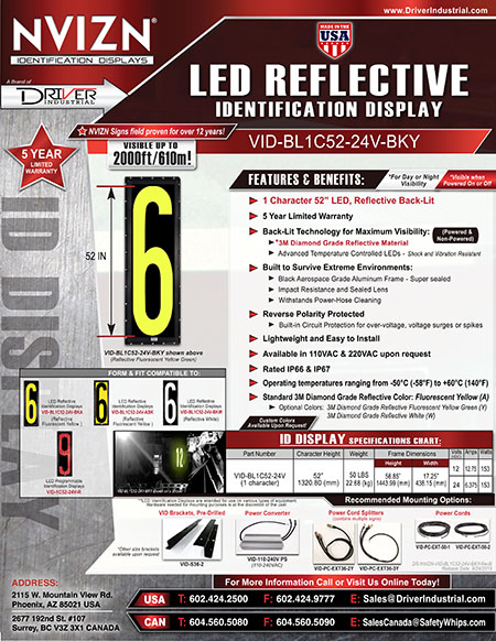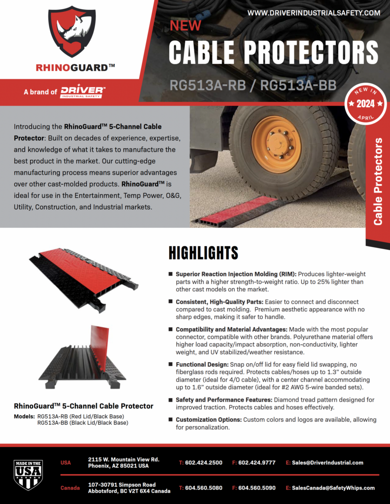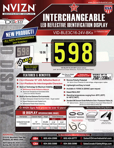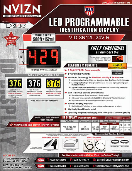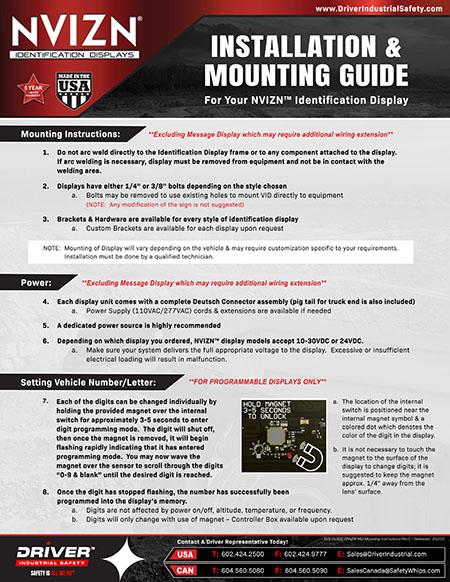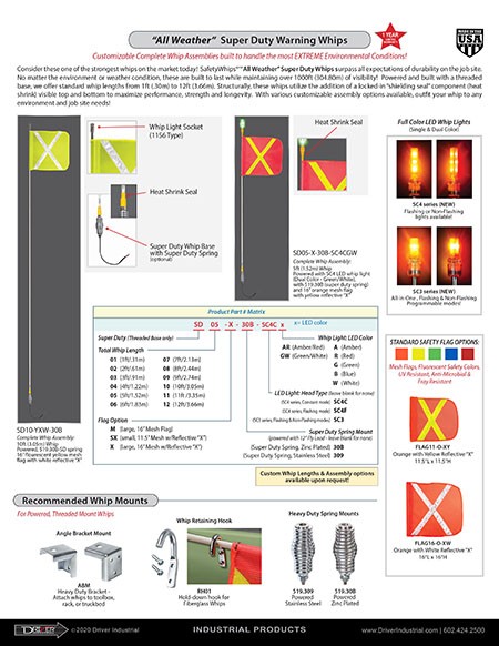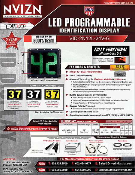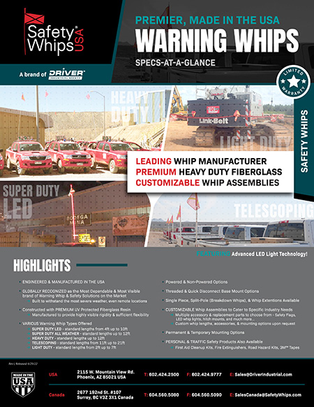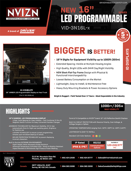Resources Resource Downloads Select Your Brand! All Brands Driver Industrial Safety Catalog 2024 FLYER-DIS-MeetOurBrands-RevI.pdf FLYER-DIS-JobsiteAccessOptions-RevI.pdf RhinoGuard 5-Channel Standard Ramp Cable Protector Data Sheet RhinoGuard 5-Channel ADA Ramp Cable Protector Data Sheet RhinoGuard General Purpose Ground Protection Mat Data Sheet RhinoGuard Heavy Duty Ground Protection Mat Data Sheet SW-Brand Hightlights DS-SW-Dual Color LED Whip SDL-WSSM-Kit DS-SW-Specs-at-a-Glance DS-SW-8ftQDBWhipKits DS-SW-ABM DS-SW-AluminumBodiedMountingOptions DS-SW-AviationTransportation DS-SW-CustomWhipSolution-MetalReflective DS-SW-HarshEnvironments DS-SW-HeavyDutySpringMount-519_30B DS-SW-HeavyDutySpringMount-519_30BNP DS-SW-HeavyDutyWhips_SuperDutyWhips DS-SW-HeavyDutyWhips DS-SW-HeavyDutyWhips-W08_W10_W12 DS-SW-HeavyDutyWhips-W08NP_W10NP_W12NP DS-SW-HoldDownHook-RH01 DS-SW-LEDWhipLights-SC3series DS-SW-LEDWhipLights-SC4series DS-SW-LEDWhipLights-SCMseries DS-SW-SnowPlowSolutions DS-SW-SuperDutyLEDWhip DS-SW-SuperDutyWhip-SD10-GXW-30B DS-SW-SuperDutyWhips-SD03_SD05_SD08_SD10_SD12 DS-SW-TelescopingWhips DS-SW-TemporaryMagnetMounts GUIDE-SW-LEDWhipLights GUIDE-SW-LightDutyWhips GUIDE-SW-LockSeal-LEDWhipLight-UserInstructions GUIDE-SW-NonPowered-WhipBases GUIDE-SW-NP-HeavyDutyWhips-QuickDisconnect GUIDE-SW-NP-HeavyDutyWhips-Threaded GUIDE-SW-PersonalTrafficSafety GUIDE-SW-Powered-HeavyDutyWhips-QuickDisconnect GUIDE-SW-Powered-HeavyDutyWhips-Threaded GUIDE-SW-Powered-ThreadedWhip-MountingInstructions GUIDE-SW-Powered-WhipBaseGuide GUIDE-SW-SafetyFlags GUIDE-SW-StakePocketMount-SPM-UserInstructions GUIDE-SW-SuperDutyWhips-AllWeather GUIDE-SW-Whip-BasesAdapters GUIDE-SW-Whip-VehicleMountingOptions GUIDE-SW-WhipHitchMounts TORO-BrandHightlights-RevA.pdf DS-TORO-GP-SpecsataGlance-RevN.pdf DS-TORO-Brackets-WC-BKT6_WC-BKT4-RevA.pdf DS-TORO-GP-WC-UO400series-RevH.pdf DS-TORO-GP-WC-UO600series-RevK.pdf DS-TORO-GP-WC-UO650-RevI.pdf DS-TORO-HE-SpecsataGlance-RevM.pdf DS-TORO-HE-WC-UO700-RevA.pdf DS-TORO-HE-WC-UY700-RevK.pdf DS-TORO-HE-WC-UY710-RevI.pdf DS-TORO-HE-WC-UY720-RevC.pdf DS-TORO-HE-WC-UY750-RevD.pdf DS-TORO-HE-WC-UY810-RevI.pdf DS-TORO-HE-WC-UY910-RevH.pdf GUIDE-TORO-WheelChock-ChockingProcedures-RevB.pdf GUIDE-TORO-WheelChock-ReferenceGuide-RevD.pdf GUIDE-TORO-WheelChock-UserGuidelines-RevB.pdf _NVIZN-BrandHighlights-RevA.pdf DS-NVIZN-VID-SpecsAtaGlance-2pg-RevN.pdf DS-NVIZN-VID-3N16L-x-RevC.pdf DS-NVIZN-PayloadDisplay-RevA.pdf DS-NVIZN-VID-1C12-24V-RevD.pdf DS-NVIZN-VID-1C18-24V-RevD.pdf DS-NVIZN-VID-1C24-24V-RevC.pdf DS-NVIZN-VID-1C36-24V-RevB.pdf DS-NVIZN-VID-2N12L-24V-A-RevC.pdf DS-NVIZN-VID-2N12L-24V-G-RevC.pdf DS-NVIZN-VID-2N12L-24V-R-RevC.pdf DS-NVIZN-VID-3C12-24V-RevB.pdf DS-NVIZN-VID-3N9-24V-RevE.pdf DS-NVIZN-VID-3N12-24V-RevD.pdf DS-NVIZN-VID-3N12L-24V-G-RevC.pdf DS-NVIZN-VID-3N12L-24V-R-RevC.pdf DS-NVIZN-VID-3N12V-24V-RevC.pdf DS-NVIZN-VID-3SBL3N16-BK-RevF.pdf DS-NVIZN-VID-4C12-24V-RevD.pdf DS-NVIZN-VID-4N12L-24V-RevD.pdf DS-NVIZN-VID-5C12-24V-RevB.pdf DS-NVIZN-VID-BL1C18-BK-RevB.pdf DS-NVIZN-VID-BL1C24-BK-RevC.pdf DS-NVIZN-VID-BL1C36-BKA-RevB.pdf DS-NVIZN-VID-BL1C36-BKY-RevB.pdf DS-NVIZN-VID-BL1C52-BKY-RevB.pdf DS-NVIZN-VID-BL2SIG6-24V-R_B-RevB.pdf DS-NVIZN-VID-BL3C16-BK-RevD.pdf DS-NVIZN-VID-BL3N9-BK-RevB.pdf DS-NVIZN-VID-BL3N12-BK-RevD.pdf DS-NVIZN-VID-BLE3C16-BK-2pg-RevE.pdf DS-NVIZN-VID-L_2pg-RevF.pdf DS-NVIZN-VID-S_2pg-RevG.pdf GUIDE-NVIZN-IdentificationDisplay-VisibilityChart-RevA.pdf GUIDE-NVIZN-InterchangeableCharacterReplacement-Instructions-RevA.pdf GUIDE-NVIZN-VID-3S2N12-3Sided-ClosedFrameAssembly-RevC.pdf GUIDE-NVIZN-VID-3S2N12L-3Sided-ClosedFrameAssembly-RevC.pdf GUIDE-NVIZN-VID-3SBL3N16-3Sided-ClosedFrameAssembly-RevA.pdf GUIDE-NVIZN-VID-3SMS-O-3Sided-OpenFrameAssembly-RevA.pdf GUIDE-NVIZN-VID-5C12T-ARG-MountingInstructions-RevA.pdf GUIDE-NVIZN-VID-MountingInstructions-RevC.pdf DS-NVIZN-MessageBoardDisplay-RevA.pdf HELIOS-BrandHightlights-RevA DS-HE-SingleDual-SpecsataGlance-RevK.pdf GUIDE-HE-XBP-SW2_SwitchWiringInstructions-RevB.pdf GUIDE-HE-XMOD-SingleDual-InstructionManual-RevB.pdf FLYER-IDC-SpecsataGlance-RevC.pdf GUIDE-IDC-MagneticCareInstructions-RevB.pdf GUIDE-IDC-VinylApplicationInstructions-RevA.pdf GUIDE-IDC-WrapCareInstructions-RevA.pdf Load More Driver Industrial Safety Catalog 2024 FLYER-DIS-MeetOurBrands-RevI.pdf FLYER-DIS-JobsiteAccessOptions-RevI.pdf RhinoGuard 5-Channel Standard Ramp Cable Protector Data Sheet RhinoGuard 5-Channel ADA Ramp Cable Protector Data Sheet RhinoGuard General Purpose Ground Protection Mat Data Sheet RhinoGuard Heavy Duty Ground Protection Mat Data Sheet SW-Brand Hightlights DS-SW-Dual Color LED Whip SDL-WSSM-Kit DS-SW-Specs-at-a-Glance DS-SW-8ftQDBWhipKits DS-SW-ABM DS-SW-AluminumBodiedMountingOptions DS-SW-AviationTransportation DS-SW-CustomWhipSolution-MetalReflective DS-SW-HarshEnvironments DS-SW-HeavyDutySpringMount-519_30B DS-SW-HeavyDutySpringMount-519_30BNP DS-SW-HeavyDutyWhips_SuperDutyWhips DS-SW-HeavyDutyWhips DS-SW-HeavyDutyWhips-W08_W10_W12 DS-SW-HeavyDutyWhips-W08NP_W10NP_W12NP DS-SW-HoldDownHook-RH01 DS-SW-LEDWhipLights-SC3series DS-SW-LEDWhipLights-SC4series DS-SW-LEDWhipLights-SCMseries DS-SW-SnowPlowSolutions DS-SW-SuperDutyLEDWhip DS-SW-SuperDutyWhip-SD10-GXW-30B DS-SW-SuperDutyWhips-SD03_SD05_SD08_SD10_SD12 DS-SW-TelescopingWhips DS-SW-TemporaryMagnetMounts GUIDE-SW-LEDWhipLights GUIDE-SW-LightDutyWhips GUIDE-SW-LockSeal-LEDWhipLight-UserInstructions GUIDE-SW-NonPowered-WhipBases GUIDE-SW-NP-HeavyDutyWhips-QuickDisconnect GUIDE-SW-NP-HeavyDutyWhips-Threaded GUIDE-SW-PersonalTrafficSafety GUIDE-SW-Powered-HeavyDutyWhips-QuickDisconnect GUIDE-SW-Powered-HeavyDutyWhips-Threaded GUIDE-SW-Powered-ThreadedWhip-MountingInstructions GUIDE-SW-Powered-WhipBaseGuide GUIDE-SW-SafetyFlags GUIDE-SW-StakePocketMount-SPM-UserInstructions GUIDE-SW-SuperDutyWhips-AllWeather GUIDE-SW-Whip-BasesAdapters GUIDE-SW-Whip-VehicleMountingOptions GUIDE-SW-WhipHitchMounts Load More TORO-BrandHightlights-RevA.pdf DS-TORO-GP-SpecsataGlance