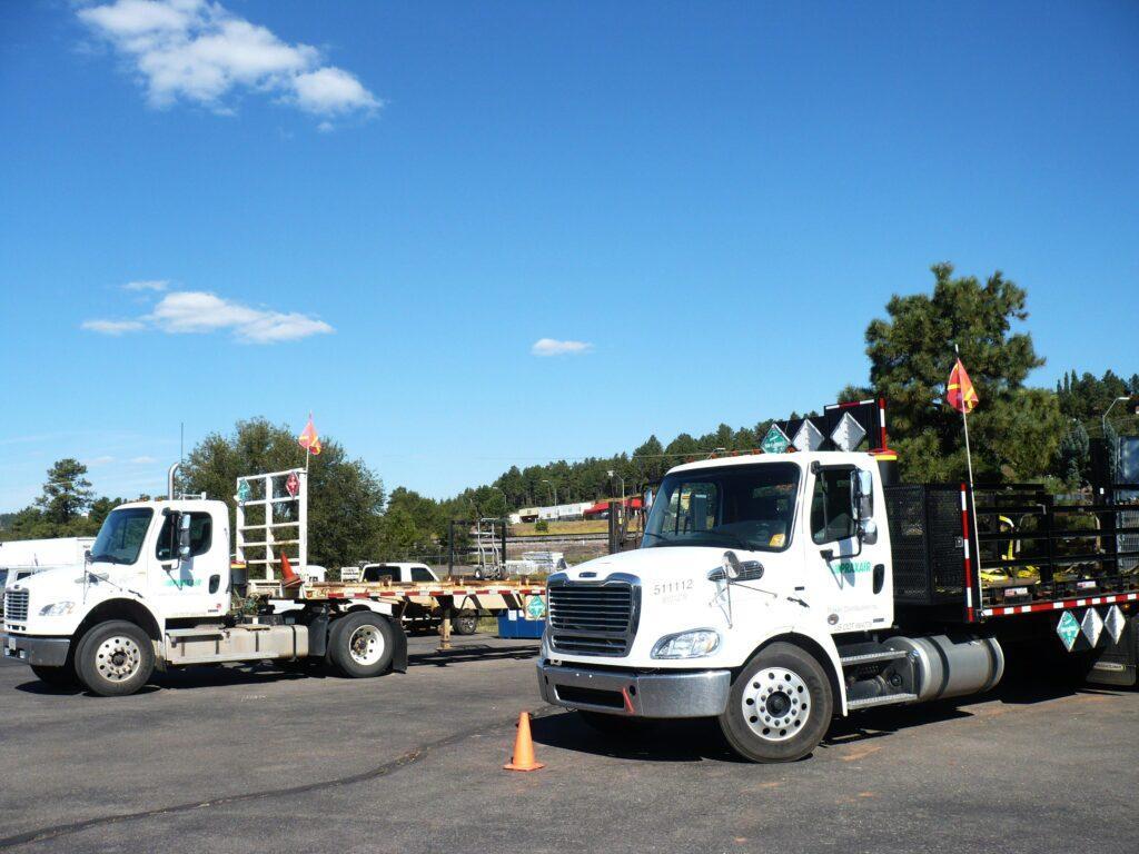 SafetyWhips® Heavy Duty Fiberglass Whips: 10ft Heavy Duty Safety Whips assembled with “Super Bright” SC3 series LED Whip Light and Orange Safety Flag with Reflective “X”, shown on a fleet of trucks.
