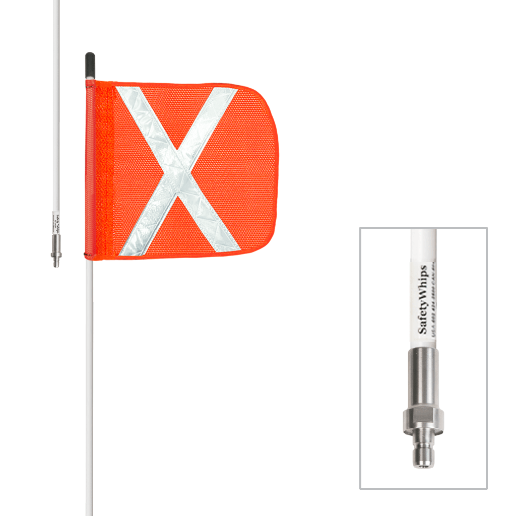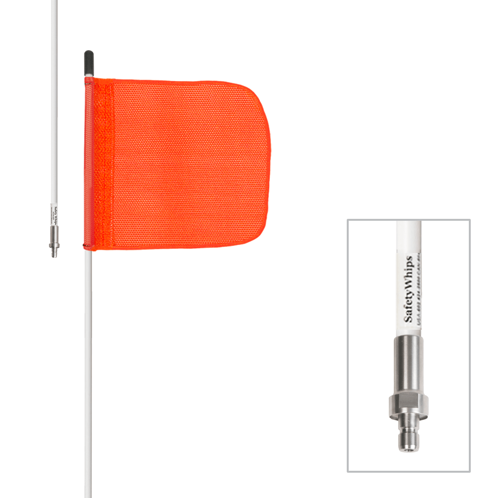 SafetyWhips® Heavy Duty Warning Whips are our most commonly sold whip on the market today. Heavy-duty whips are constructed of safe and non-conductive heavy-duty fiberglass for heavy-duty vehicle and equipment needs, and are available with threaded or quick disconnect mounts. These heavy-duty whips are offered as a single piece or a two-piece breakdown, or split pole options with heavy-duty fiberglass whip extensions available for added length (for powered and non-powered whips). Standard whip lengths are available from 3ft (0.91m) up to 12ft (3.66m) with whip extensions from 1ft (.30m) to 6ft (1.83m). Various accessory options available to customize your whip include safety flags, mounts, and LED whip lights.