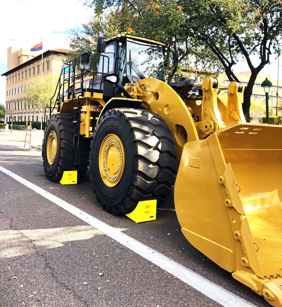 The Heavy Equipment line of TORO® Wheel Chocks are heavy duty and engineered to safely secure heavy equipment vehicles, such as haul trucks, loaders, cranes, fire department vehicles, large military trucks, and heavy underground mining vehicles. Constructed with tough urethane for lightweight and easy mobility with a built-in, strong carrying handle on the back side of each wheel chock, these large chocks are highly visible (ANSI-compliant safety colors) with user-friendly mounting brackets for quick and secure loading on the vehicle. All model styles are third-party tested for compliance with maximum payload capacities ranging from 40 Ton (80,000lbs or 36,287.39kg) to 400 Ton (1,600,000lbs or 362,873.90kg) and maximum tire diameter sizes of up to 165 inches (419.10cm).