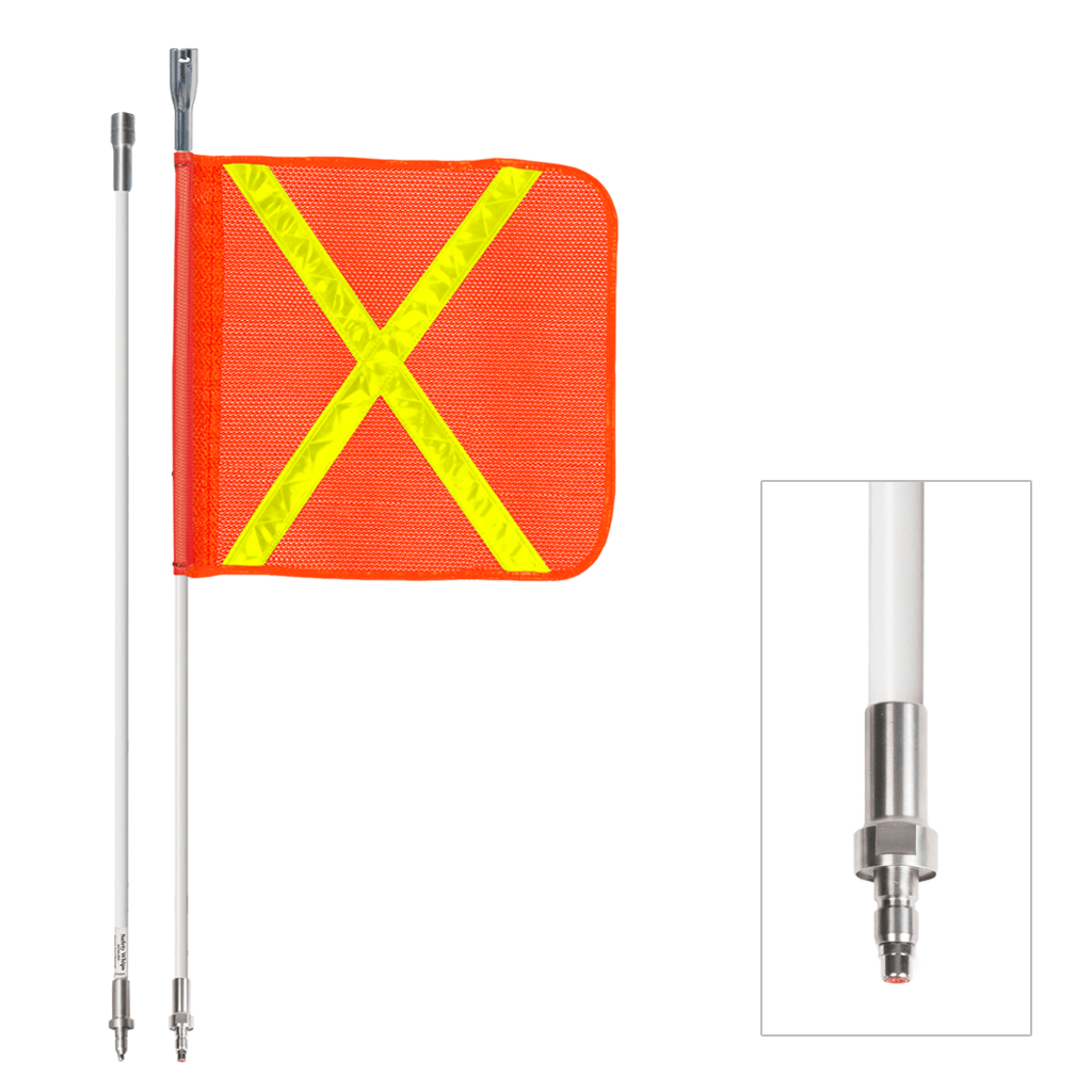 5', 2 Piece (Breakdown), Powered, Quick Disconnect, Heavy Duty Whip with Orange Flag (Yellow X)