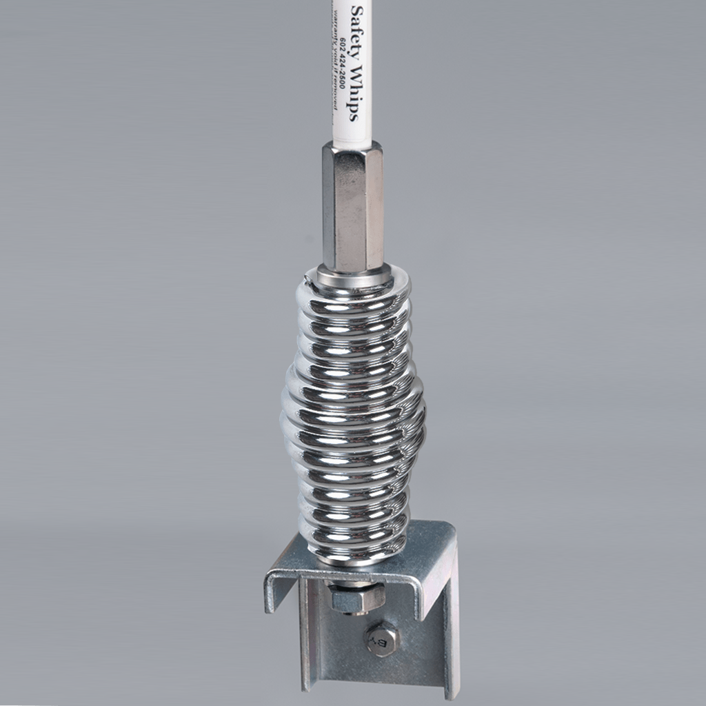 SafetyWhips® Spring mounts are highly recommended to help reduce whip breakage and wear and tear on whip. The spring provides a higher threshold for jarring and jolting as it reduces the amount of pressure placed on the whip pole when jolted driving your vehicle over rocky rough terrain or heavy equipment jolts from use of heavy equipment.