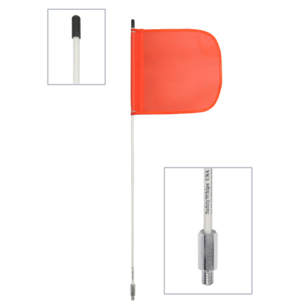 Safe & non-conductive Fiberglass Whips for all Light Duty vehicle & equipment needs. Standard whip lengths available from 2ft (.61m) up to 7ft (2.13m) with various Accessory options available to customize your whip: Safety Flags & Mounts