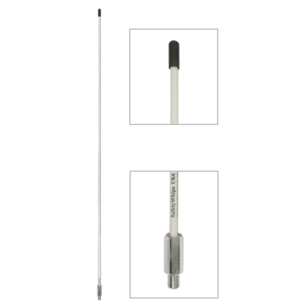 Safe & non-conductive Fiberglass Whips for all Light Duty vehicle & equipment needs. Standard whip lengths available from 2ft (.61m) up to 7ft (2.13m) with various Accessory options available to customize your whip: Safety Flags & Mounts