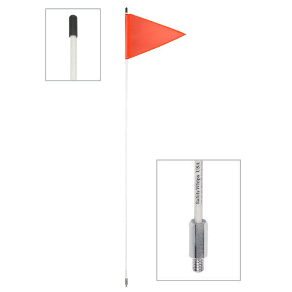 Safe & non-conductive Fiberglass Whips for all Light Duty vehicle & equipment needs. Standard whip lengths available from 2ft (.61m) up to 7ft (2.13m) with various Accessory options available to customize your whip: Safety Flags & Mounts