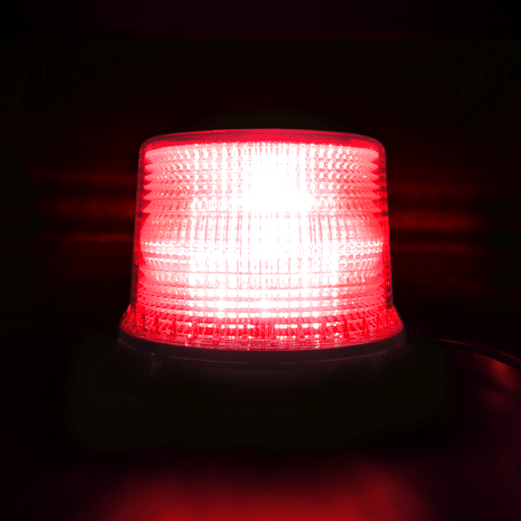 HELIOS X-MOD Heavy Duty Interchangeable (Red) LED Beacon Features Replaceable Parts, Artificial Intelligence, 10 Programmable Flash Patterns, Photosensor For Programmable Night Only Barricade Mode Operation, Programmable Night Dimming Mode To Avoid Glare, Impact Resistant Dust Dome, Optically Enhanced (CLEAR) Profile Lens, (Red) LEDs, Permanent Mount. 12" Pigtail For Power Connection, 6.65 H x 6.5 W, 10-48Vdc; 1.25 Max Amps. Meets SAE Class 1, Title 13, CE, IP67, IP69K, RoHS & DOT Requirements.