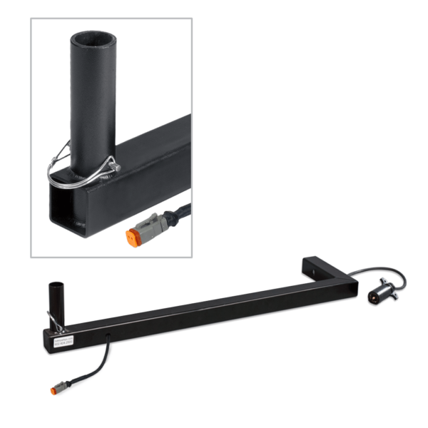 HEAVY DUTY STEEL HITCH MOUNT: Powered Telescoping or UPM Whip Base, via the Weatherproof Deutsch Connector. Includes a 7-Way Plug for a quick and easy power supply hook-up. This LEFT SIDE OFFSET model allows the Warning Whip to be positioned to the left of the tailgate wich will allow you to open and close the tailgate while keeping the whip in place. ** Hitchpin and cotter pin sold separately