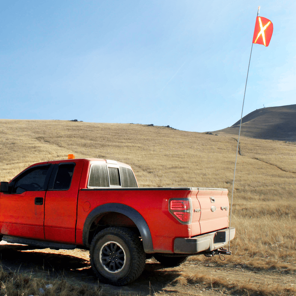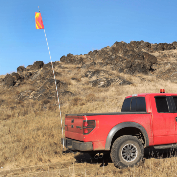 SafetyWhips® offers both regular sized Hitch Mounts and Extended Hitch Mounts either powered or not powered with an option to add a backup alarm for all of our whips and mount options. SafetyWhips® Extended Hitch mount options are often used to attach a whip without permanent installation to your vehicle body as well as enable use of the bed of the truck for tailgate access or rear hatch access when needed.