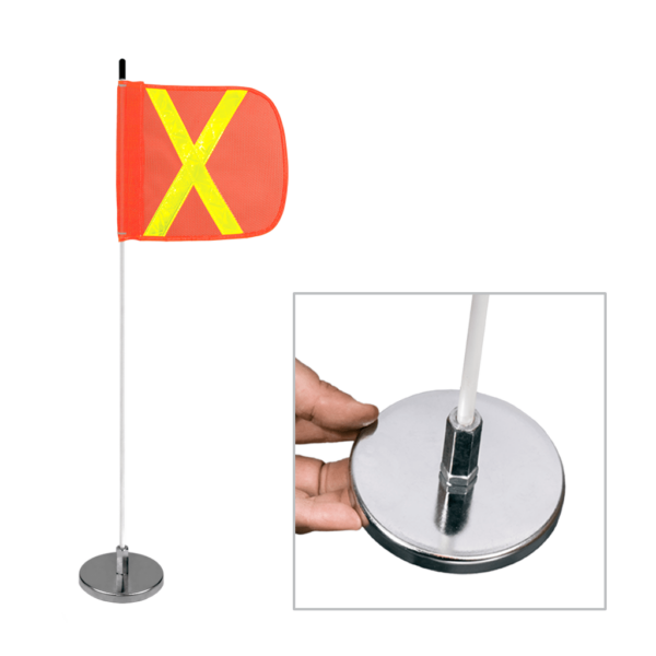 2' Light Duty Whip with Orange Flag (Yellow X) and a Magnetic Mounting Base PART #: LWM02-SXY