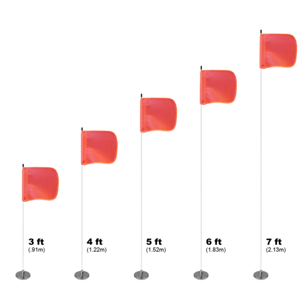 Safe & non-conductive Fiberglass Whips for all Light Duty vehicle & equipment needs. Standard whip lengths available from 2ft (.61m) up to 7ft (2.13m) with various Accessory options available to customize your whip: Safety Flags & Mounts