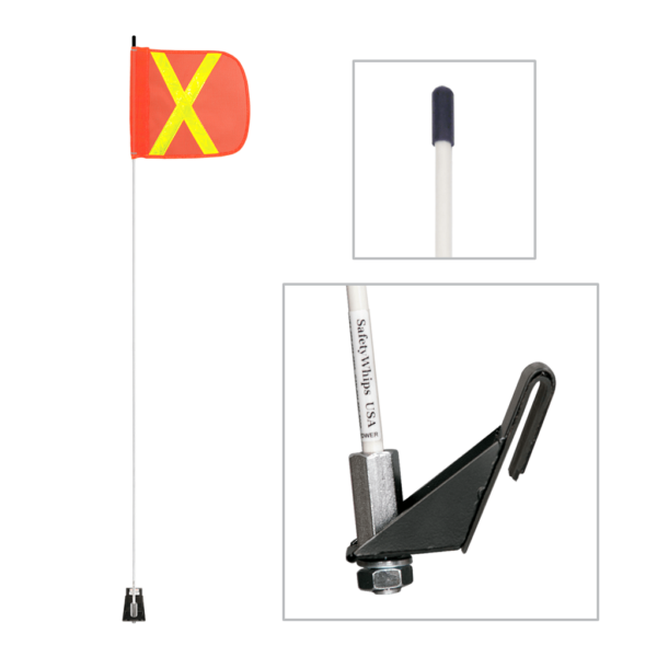 6' Light Duty Whip with Light Duty Window Mount Includes Window Bracket. 5/16" Whip Diameter. This whip includes an Orange Mesh 11.5" x 11.5" flag with a Yellow Reflective ''X''.