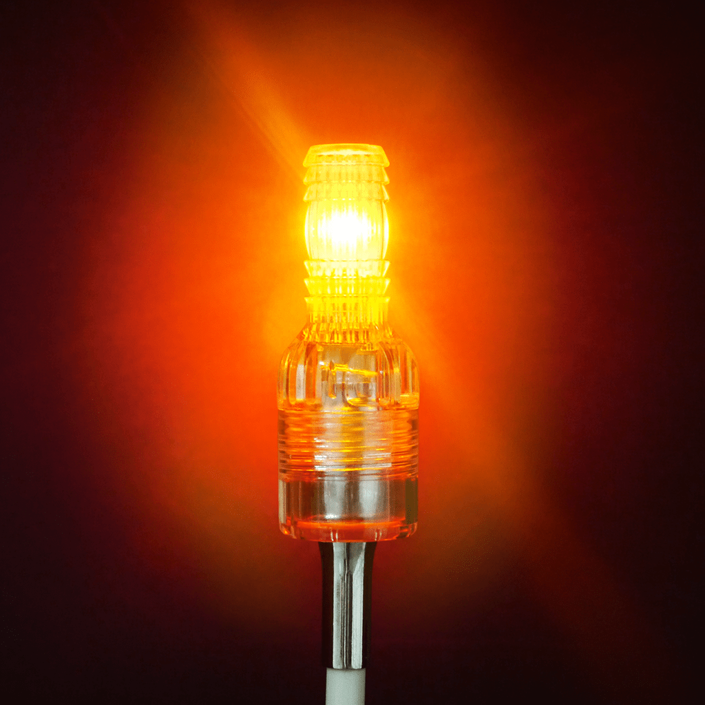 Low Profile Hi-Visibility Super Bright Amber LED Whip Light with Locking Base, Break and Scratch Resistant lens with 360° light diffusion, Multivoltage 10-40V IP66 IP67, Programmable Flash and Non-Flashing, Programmable "Photosensor" to stabilize nighttime visibility; 100,000 Hour - Fits 1156 Sockets, Changeable With Magnet.
