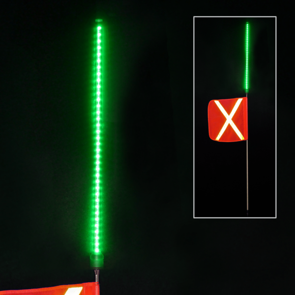 Mega Programmable Flash and Non-Flashing (72)LED Whip Light with Locking Base, 10-40V, IP66, Programmable Dimming; 100,000 Hour - Fits 1156 Sockets, Green & White Changeable With Magnetic Switch.