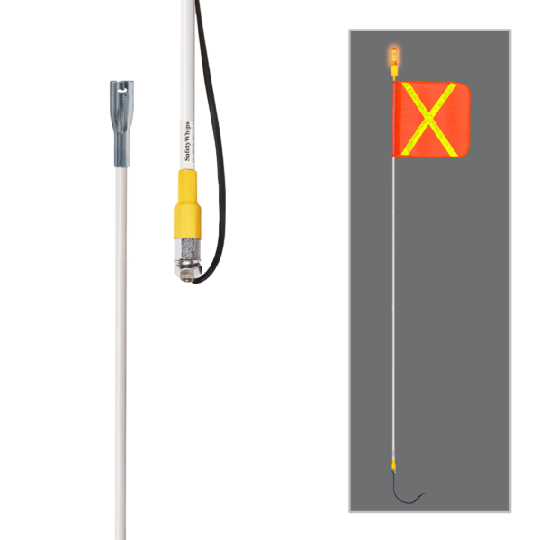 Safe & non-conductive, All-Weather Super Duty Fiberglass Whips built to handle the most extreme environmental conditions that your vehicle & equipment may endure. Super Duty SafetyWhips® have a continuous power cable which runs continuously thru LED light and hex base and extends 18. This helps to eliminate connection failures due to corrosion or the entrance of contaminants into your fittings; as well as remove the chances of having any conceivable breaks in the internal wires. These whips also have added locked-in shielding components, top and bottom seaLED against harsh environments, corrosion & moisture for increased durability. This product is offered in Complete Whip Assemblies and as well as optional customization for your needs. Standard whip lengths available from 1ft (1.52m) up to 12ft (3.66m) with various Accessory options available: Safety Flags, Mounts, LED Whip Lights.