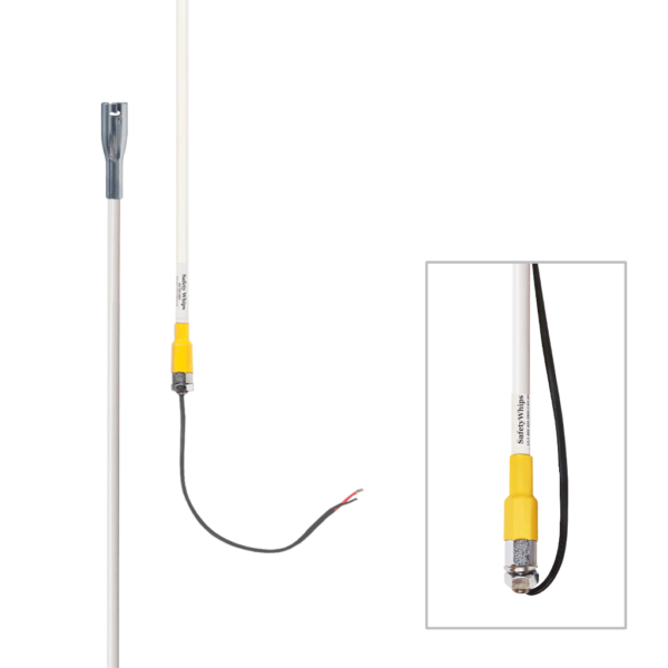 Safe & non-conductive, All-Weather Super Duty Fiberglass Whips built to handle the most extreme environmental conditions that your vehicle & equipment may endure. Super Duty SafetyWhips® have a continuous power cable which runs continuously thru LED light and hex base and extends 18. This helps to eliminate connection failures due to corrosion or the entrance of contaminants into your fittings; as well as remove the chances of having any conceivable breaks in the internal wires. These whips also have added locked-in shielding components, top and bottom seaLED against harsh environments, corrosion & moisture for increased durability. This product is offered in Complete Whip Assemblies and as well as optional customization for your needs. Standard whip lengths available from 1ft (1.52m) up to 12ft (3.66m) with various Accessory options available: Safety Flags, Mounts, LED Whip Lights.