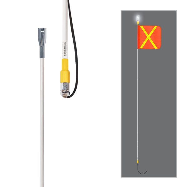 Safe & non-conductive, All-Weather Super Duty Fiberglass Whips built to handle the most extreme environmental conditions that your vehicle & equipment may endure. Super Duty SafetyWhips® have a continuous power cable which runs continuously thru LED light and hex base and extends 18”. This helps to eliminate connection failures due to corrosion or the entrance of contaminants into your fittings; as well as remove the chances of having any conceivable breaks in the internal wires. These whips also have added “locked-in” shielding components, top and bottom seaLED against harsh environments, corrosion & moisture for increased durability. This product is offered in Complete Whip Assemblies and as well as optional customization for your needs. Standard whip lengths available from 1ft (1.52m) up to 12ft (3.66m) with various Accessory options available: Safety Flags, Mounts, LED Whip Lights.
