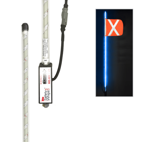 5' Blue (B) Super Duty LED Whip. This is the toughest, most versitile LED whip built today. All Weather with pressure vent protection. Full top to bottom LED lighting gives you maximum visibility in any situation. This whip includes an Orange Mesh 11.5" x 11.5" flag with a White Reflective ''X''. *** 12 VOLTS ONLY