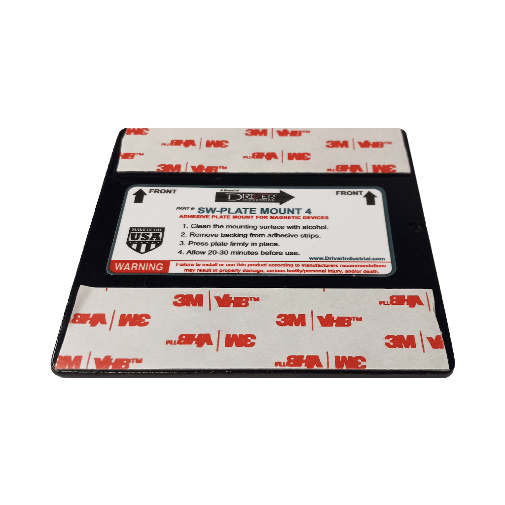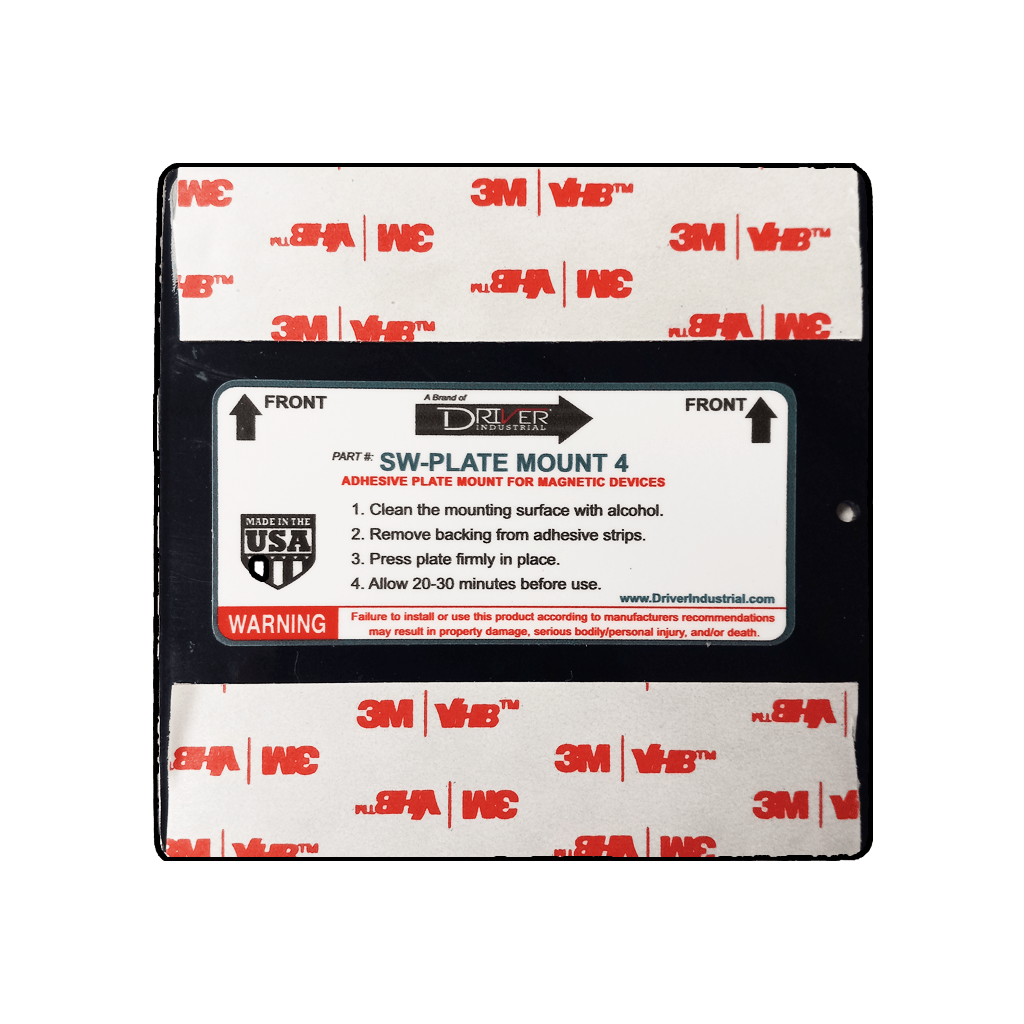 4" SQUARE Black, Powder Coated Steel Plate With Adhesive Backing. Used for mounting Magnetic Warning Lights on NON-MAGNETIC SURFACES.