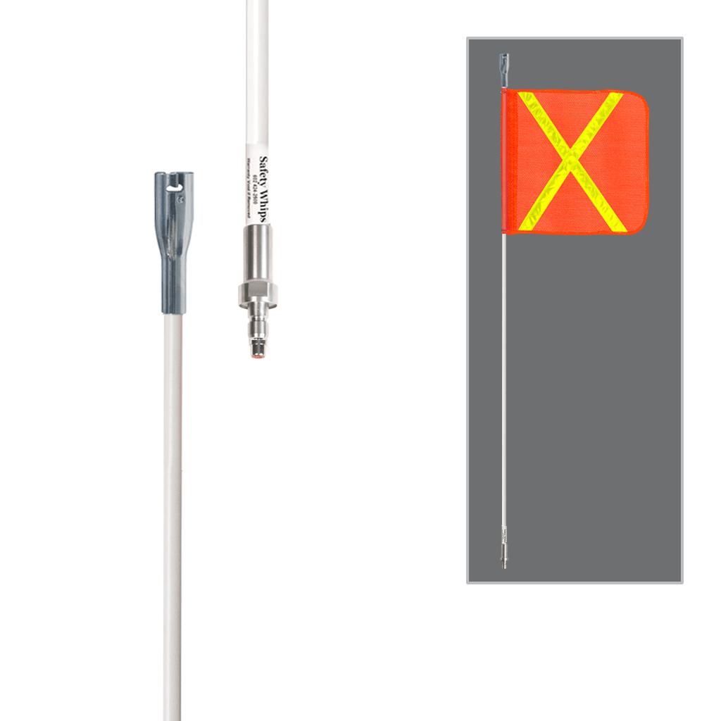 Heavy Duty SafetyWhips® Whip Lengths available are from 3ft (0.91m) up to 12ft (3.66m) with whip extensions from 1ft (.30m) to 6ft (1.83m); with custom lengths available upon request. Our Standard Whip Lengths in stock are 3″, 4″, 5″, 6″, 8″, 10″, 12″ lengths. You have your choice of lighting options, mounting accessories, heavy duty flags made of our high-quality Super Visibility nylon mesh flag made with or without 3M ® Scotchlite ® Reflective X, as well as an optional heavy duty spring mounting base. SafetyWhips® has the largest assortment of options for your base, mount, spring, flag and lighting of your whip. Heavy Duty SafetyWhips® are well known for their quick, convenient and beneficial add-on options such as the Quick Disconnect to easily disconnect from your vehicle for quick removal & convenient stow-a-way; the split pole or 2 piece break down options for convenient stow-a-way in tool boxes or small vehicle compartments; or adding an add-on extension to add additional length as needed. Make sure to check that you have selected any of these add-on optional products you wish to build your whip in your cart.