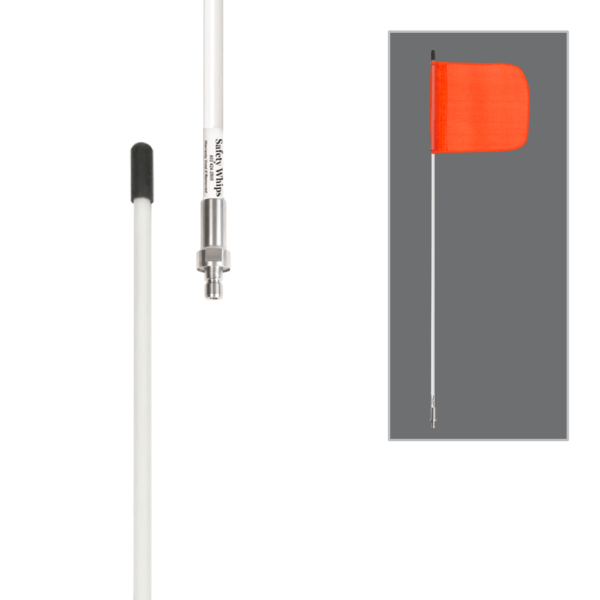 Heavy Duty SafetyWhips® Whip Lengths available are from 3ft (0.91m) up to 12ft (3.66m) with whip extensions from 1ft (.30m) to 6ft (1.83m); with custom lengths available upon request. Our Standard Whip Lengths in stock are 3″, 4″, 5″, 6″, 8″, 10″, 12″ lengths. You have your choice of lighting options, mounting accessories, heavy duty flags made of our high-quality Super Visibility nylon mesh flag made with or without 3M ® Scotchlite ® Reflective X, as well as an optional heavy duty spring mounting base. SafetyWhips® has the largest assortment of options for your base, mount, spring, flag and lighting of your whip. Heavy Duty SafetyWhips® are well known for their quick, convenient and beneficial add-on options such as the Quick Disconnect to easily disconnect from your vehicle for quick removal & convenient stow-a-way; the split pole or 2 piece break down options for convenient stow-a-way in tool boxes or small vehicle compartments; or adding an add-on extension to add additional length as needed. Make sure to check that you have selected any of these add-on optional products you wish to build your whip in your cart.