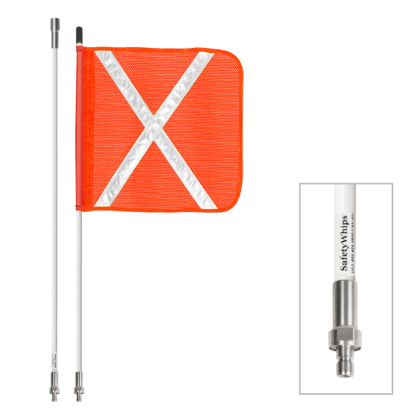 5', 2 Piece (Breakdown), Non-powered, Quick Disconnect, Heavy Duty Whip with Orange Flag (White X) PART #: SW05QDNP2-XW