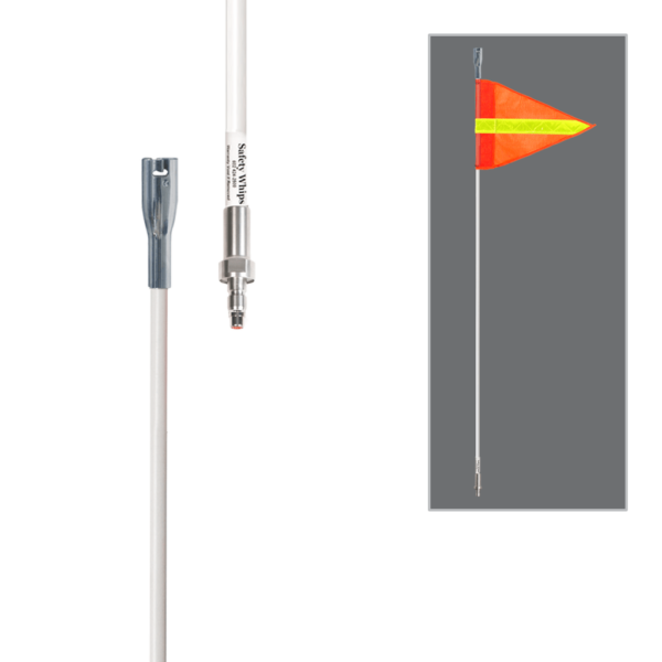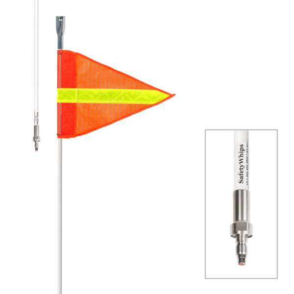 Heavy Duty SafetyWhips® Whip Lengths available are from 3ft (0.91m) up to 12ft (3.66m) with whip extensions from 1ft (.30m) to 6ft (1.83m); with custom lengths available upon request. Our Standard Whip Lengths in stock are 3″, 4″, 5″, 6″, 8″, 10″, 12″ lengths. You have your choice of lighting options, mounting accessories, heavy duty flags made of our high-quality Super Visibility nylon mesh flag made with or without 3M ® Scotchlite ® Reflective X, as well as an optional heavy duty spring mounting base. SafetyWhips® has the largest assortment of options for your base, mount, spring, flag and lighting of your whip. Heavy Duty SafetyWhips® are well known for their quick, convenient and beneficial add-on options such as the Quick Disconnect to easily disconnect from your vehicle for quick removal & convenient stow-a-way; the split pole or 2 piece break down options for convenient stow-a-way in tool boxes or small vehicle compartments; or adding an add-on extension to add additional length as needed. Make sure to check that you have selected any of these add-on optional products you wish to build your whip in your cart.