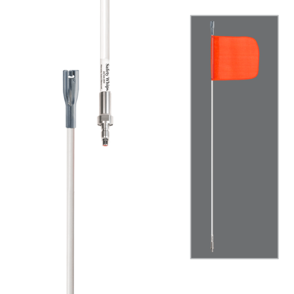 Heavy Duty SafetyWhips® Whip Lengths available are from 3ft (0.91m) up to 12ft (3.66m) with whip extensions from 1ft (.30m) to 6ft (1.83m); with custom lengths available upon request. Our Standard Whip Lengths in stock are 3″, 4″, 5″, 6″, 8″, 10″, 12″ lengths. You have your choice of lighting options, mounting accessories, heavy duty flags made of our high-quality Super Visibility™ nylon mesh flag made with or without 3M ® Scotchlite ® Reflective X, as well as an optional heavy duty spring mounting base. SafetyWhips® has the largest assortment of options for your base, mount, spring, flag and lighting of your whip. Heavy Duty SafetyWhips® are well known for their quick, convenient and beneficial add-on options such as the Quick Disconnect to easily disconnect from your vehicle for quick removal & convenient stow-a-way; the split pole or 2 piece break down options for convenient stow-a-way in tool boxes or small vehicle compartments; or adding an add-on extension to add additional length as needed. Make sure to check that you have selected any of these add-on optional products you wish to build your whip in your cart.