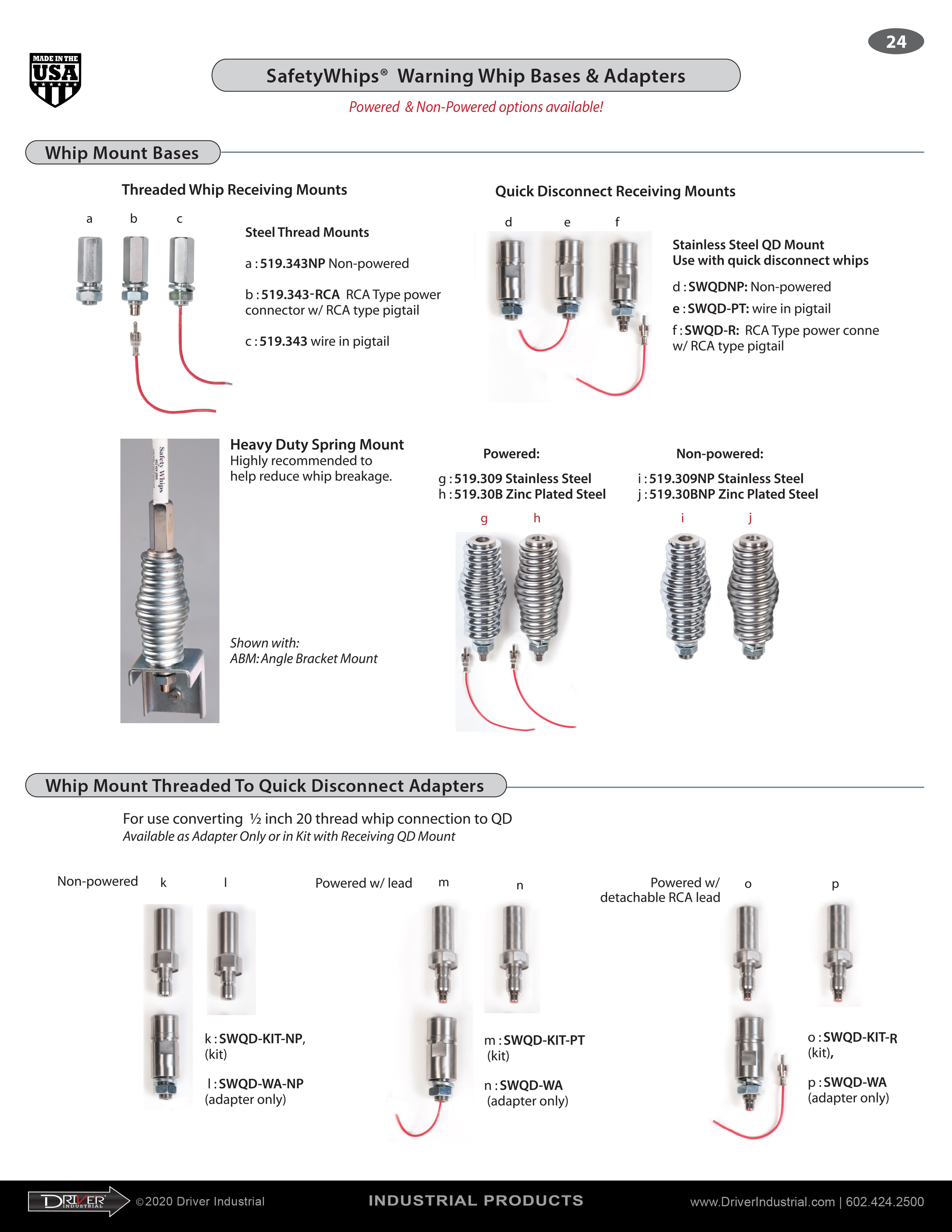 SafetyWhips® Heavy Duty whips are our most common sold whip on that market today. Heavy Duty whips are constructed of safe & non-conductive Heavy Duty Fiberglass for Heavy Duty vehicle & equipment needs, available with Threaded or Quick Disconnect mounts.