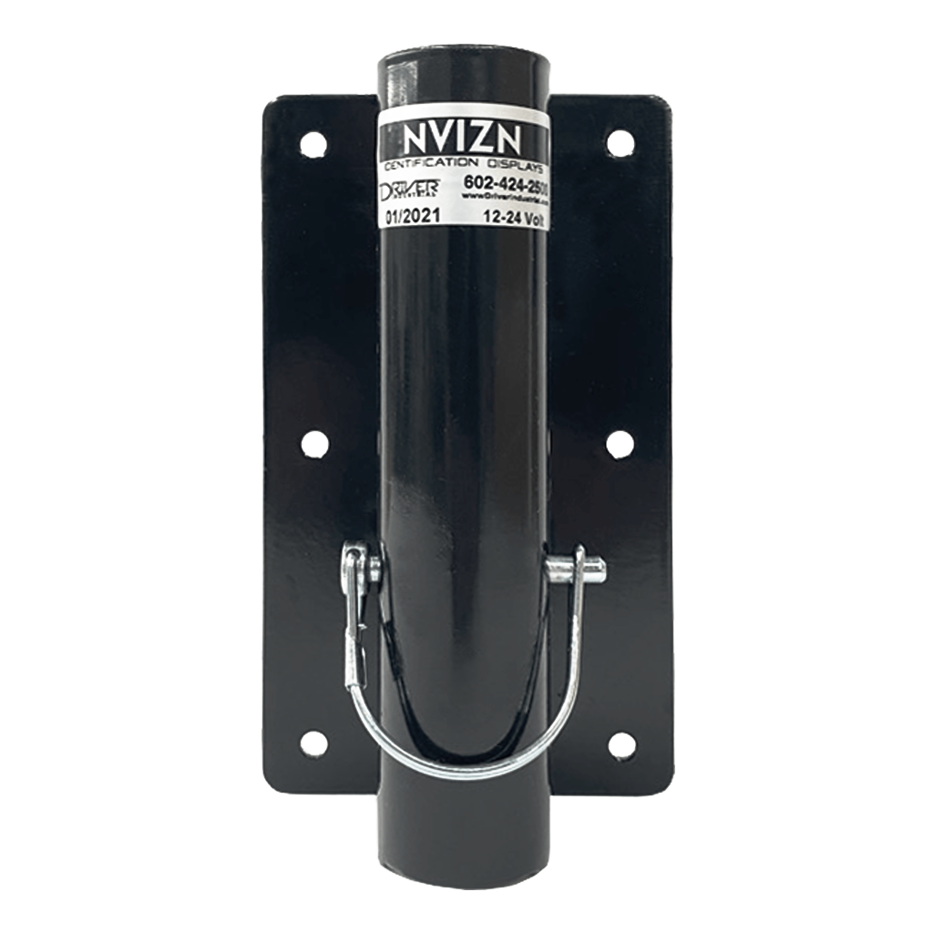 The Universal Platform Mount System is a convenient system which includes a powered or non-powered Universal Platform Mount, a powered or non-powered 3′ or 5′ Universal Platform Mount System Pole (*Pole length as needed as per your install on your vehicle to meet your necessary site access safety height), a quick pin for latching the Pole to the mount, and an option for either a threaded or Quick Disconnect Whip base option for your SafetyWhip. The Universal Platform Mount is a powder coated steel platform surface for magnetic devices as well as various mounting holes to allow for all basic safety and communication devices to be bolted directly to the platform. The benefits of having all routine safety devices in one easy quick temporary mount with this Universal Platform are unsurmountable. You can attach multiple optional items such as a SafetyWhips® whip (warning whip, flag and LED whip light), a Helios Warning Lights beacon, and an NVIZN Small 3-Sided Display with your vehicle identification unit number on display. Aluminum body frame vehicles also find the Universal Platform Mount System to be a convenient one stop solution for their safety requirements. The Universal Platform Mount ensures end user convenience as it can be easily taken on or off very quickly, and enables light duty vehicles max site safety and identification of your vehicle by ensuring you can easily mount and dismount all three identification items altogether. The Universal Platform Mount System has several mount options with a Side Wall or ToolBox Mount, regular length hitch mount options; or extended hitch mount options as well to ensure access to your tailgate or vehicle rear at all times. *You may also add a Back-Up alarm to your hitch mount.