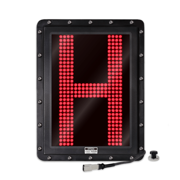HEAVY DUTY, HI-VISIBILITY 1 Character 18'' Red (R) LED Programmable Display Day & Night Visibility up to Up to 1000 ft (300 m) with Automatic Dimming. Black Frame for high contrast visibility. IP66/67 Weather Resistant. Field proven for over 15 years to survive extreme environments.