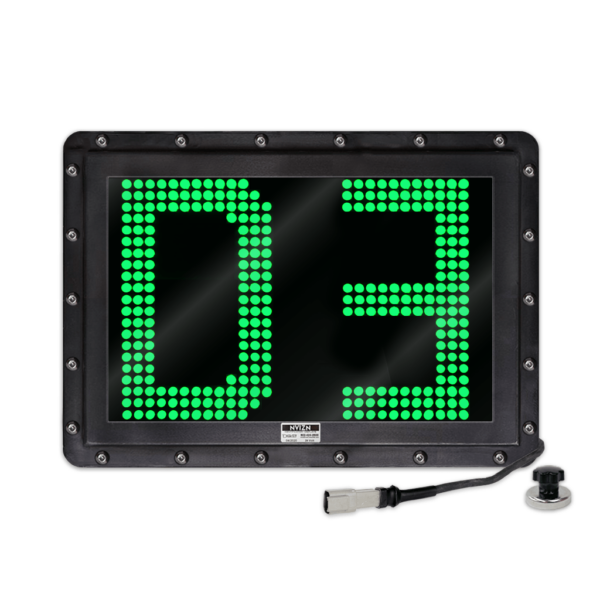 HEAVY DUTY, HI-VISIBILITY 2 Character 12'' Green (G) LED Programmable Display Day & Night Visibility up to Up to 500 ft (152 m) with Automatic Dimming. Black Frame for high contrast visibility. IP66/67 Weather Resistant. Field proven for over 15 years to survive extreme environments.