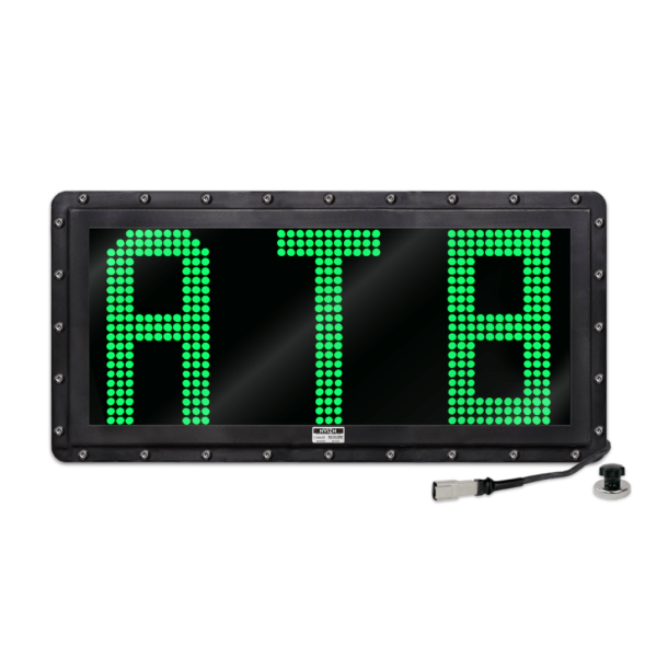 HEAVY DUTY, HI-VISIBILITY 3 Character 12'' Green (G) LED Programmable Display Day & Night Visibility up to Up to 500 ft (152 m) with Automatic Dimming. Black Frame for high contrast visibility. IP66/67 Weather Resistant. Field proven for over 15 years to survive extreme environments.