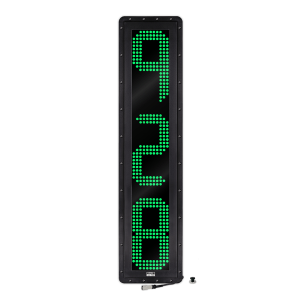 HEAVY DUTY, HI-VISIBILITY 3 Digit Numeric 12'' Green (G) LED Programmable Display Day & Night Visibility up to Up to 500 ft (152 m) with Automatic Dimming. Black Frame for high contrast visibility. IP66/67 Weather Resistant. Field proven for over 15 years to survive extreme environments.