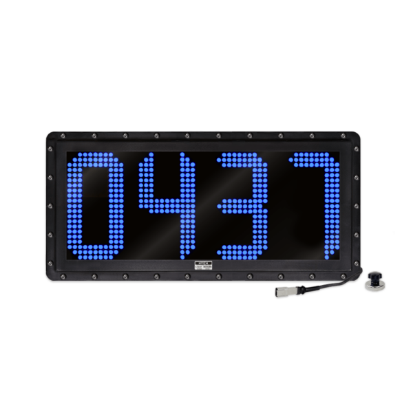 HEAVY DUTY, HI-VISIBILITY 4 Digit Numeric 12'' Blue (B) LED Programmable Display Day & Night Visibility up to Up to 500 ft (152 m) with Automatic Dimming. Black Frame for high contrast visibility. IP66/67 Weather Resistant. Field proven for over 15 years to survive extreme environments.
