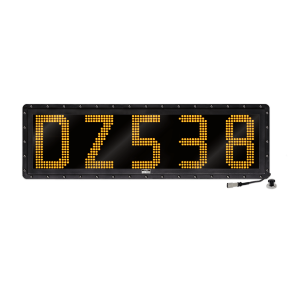HEAVY DUTY, HI-VISIBILITY 5 Character 12'' Amber (A) LED Programmable Display Day & Night Visibility up to Up to 500 ft (152 m) with Automatic Dimming. Black Frame for high contrast visibility. IP66/67 Weather Resistant. Field proven for over 15 years to survive extreme environments.