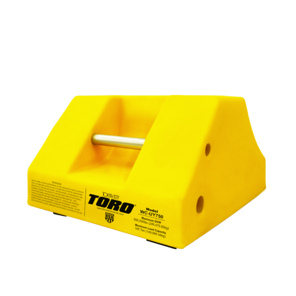 The Heavy Equipment line of TORO® Wheel Chocks are heavy duty and engineered to safely secure heavy equipment vehicles such as haul trucks, loaders, cranes, fire department vehicles, large military trucks, and heavy underground mining vehicles. Constructed with tough Urethane for lightweight and easy mobility with built-in strong carrying handle on the back side of each wheel chock. These large chocks are highly visible (ANSI compliant safety colors) with user-friendly mounting brackets for quick and secure loading on the vehicle. All model styles are 3rd-party tested for compliance with Maximum Payload Capacities ranging from 70 Ton (140,000 lb. or 63,502 kg.) to 400 Ton (800,000 lb. or 362,873 kg.) and maximum tire diameter sizes of up to 165 inches (419cm).